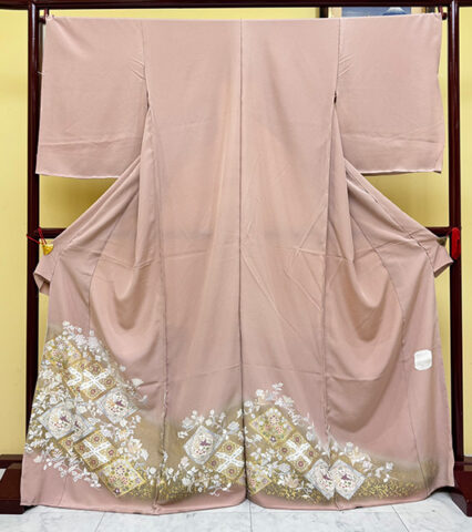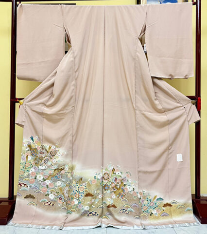 【色留袖】5つ紋 比翼仕立て IR-5(フリーサイズ) PrevNext 【色留袖】5つ紋 比翼仕立て IR-5(フリーサイズ) IR-5(フリーサイズ) 色/ ベージュ柄/金の簾(すだれ)に四季花 レンタル価格:165,000円(税込) ※詳しい価格はお問い合わせください ご試着・ご来店予約はコチラ